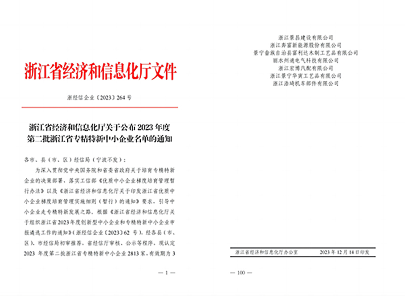 近日,浙江省經濟和信息化廳公布2023年度第二批浙江省專精特新中小企業名單,麗水州通電氣科技有限公司、浙江宏博汽配有限公司等7家企業榜上有名。至此,2023年度我縣累計培育省級專精特新中小企業9家,總數達13家,增量實現翻番。