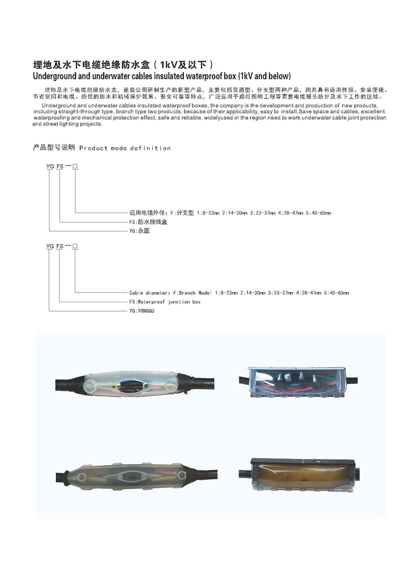 埋地及水下電纜絕緣防水盒(1kV及以下)