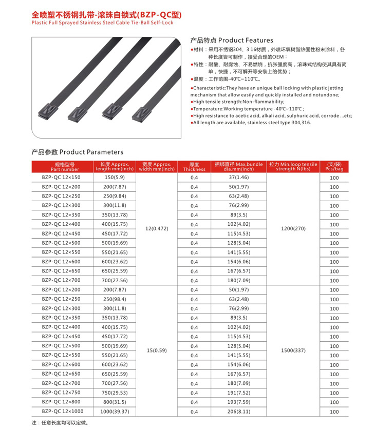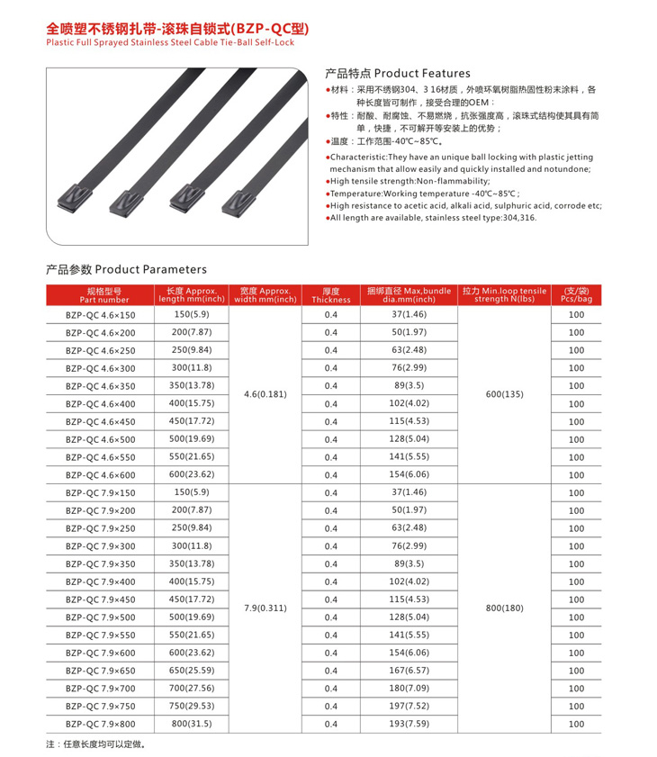 噴塑珠式不銹鋼自鎖扎帶(全噴)